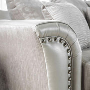 Surround yourself in elegance as you relax against the various upholsteries of this gorgeous sofa collection. Available in four colors, this sophisticated set will be a sure topic of conversation when guests come over. Nailhead trim decorates the leatherette panels while linen-like upholstery wraps the flared exterior. Reversible seat cushions and back pillows allow you to customize your home area to perfection.