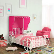 Treat your little princess to a storybook book ending night after night. With this magical carriage bed carrying your darling duchess off to sleep every night, she'll have wonderful enchanted dreams. This magical carriage bed features entrancing swirl designs attached to realistic carriage wheels while the high-back, pink wingback tent boasts a matching contrast trim to top off the fairy tale appearance.