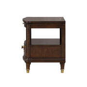 View full detailsTransitional Dark Cherry Solid Rubberwood, Cherry w/ Poplar Burl Veneer Gold-Capped Legs Round Key Knobs Felt-Lined Top Drawers French/English Dov...