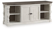 - TV stand with 2-door cabinet with single-shelf storage and 2 open shelves