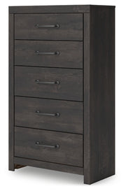 This chest of drawers puts a casually chic twist on everyday function. Its rustic charcoal finish pairs well with other neutrals and pops of color alike, giving you the flexibility to change up your aesthetic as you please. Smooth-gliding drawers keep clothes and bed linens stored in style.