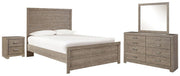 View full detailsThis full panel bed with nightstand entices with a weathered driftwood finish evoking such an ethereal vibe—exactly what you need for your serene m...