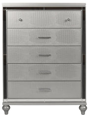 New Classic Furniture Valentino 5 Drawer Chest in Silver