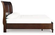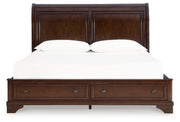 This king sleigh storage bed has a timeless look and traditional design that dresses up your bedroom. Its warm brown cherry finish adds a casual classic aesthetic, with the double-framed panels on the sleigh headboard complemented by a chic storage footboard.