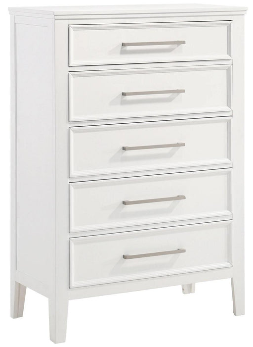 Andover Collection by New Classic White finish 5 Drawers Rubberwood & Engineered Veneer Kenlin Glides French/English Dovetail Drawers