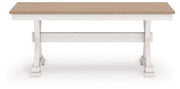 Busy breakfasts and family dinners get a dose of modern farmhouse flair with this dining bench. Its two-tone finish contrasts a light butcher block hue with antiqued white for an utterly charming effect. An effortless seating solution, the bench can tuck under your table to give you extra space to maneuver through the dining room.