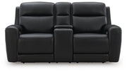 Relax like never before. This power reclining loveseat offers the look and feel of leather at a comfortably affordable faux leather price. With chic tailoring and stylish welting, it creates a sophisticated presence and makes a lasting impression. When you're ready to be pampered, indulge in the adjustable headrests, heated seats and air massage, all at the touch of a button. And did we mention the loveseat's console with storage and dual cup holders? Chill time just got a whole lot sweeter.