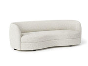 Compact fitted kidney-shaped single cushion, curved arms and backrest, and barely-there wooden legs contribute to this piece's tight fit and ultra comfort. Besides the intriguing shape, the other draw here is the visual impact it brings to any modern space. The boucle fabric features metallic undertones which when paired with a neutral color palette under certain lighting conditions, allow the texture to glitter and shine in the most undeniably chic way.
