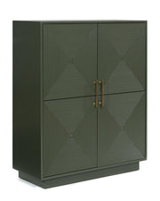 This accent cabinet makes a big impact with just one piece. Its intricately patterned doors impress with their dimension, while the dark green finish and sleek goldtone handles add a touch of modern elegance. Adjustable shelves add everyday functionality to this sophisticated yet approachable piece.