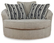 This oversized swivel accent chair caters to your need for contemporary comfort. Large in scale and decked out in feel-good fabric, it gives you space to sprawl out. And the 360-degree swivel motion makes it easy to view the TV or chat with others in your seating area. Quality time has never been so cozy.